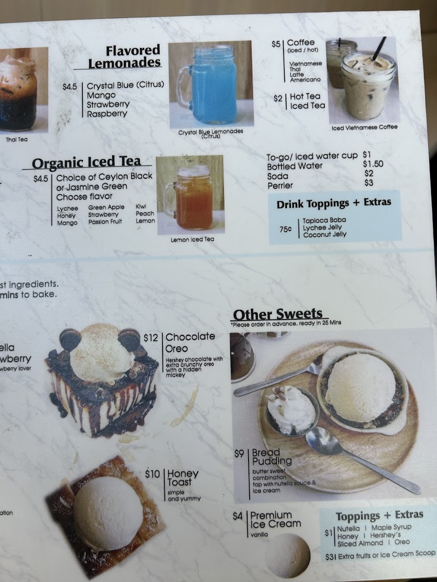 - Beverages - Pair your meal with refreshing Organic Iced Tea or a delightful Organic Milk Tea.